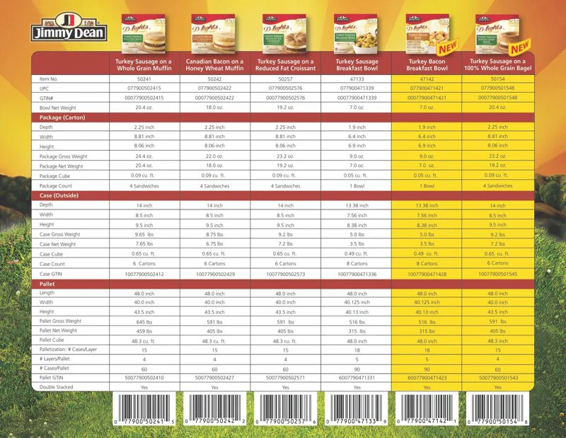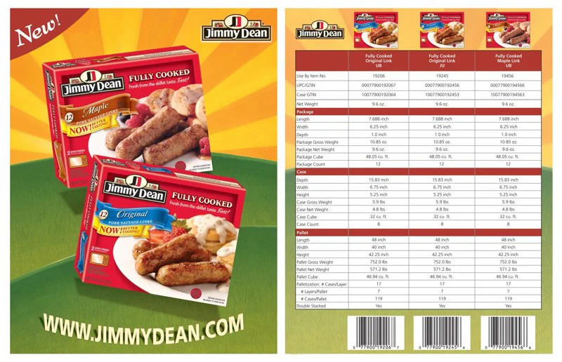 Jimmy Dean: D-Lights Spec Sheet – Front