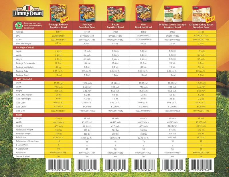 Jimmy Dean: Breakfast Bowls Spec Sheet – Back